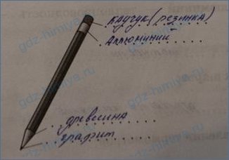 8. С давних времен для письма использовали карандаши. Из кусочков мягкого минерала графита изготавливали палочки. Их обертывали в различный материал, чтобы не пачкать руки. Подпишите названия веществ, из которых изготовлен карандаш.