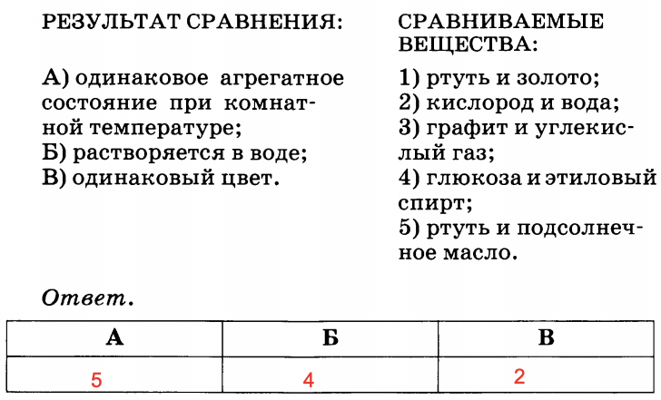 7В. Установите соответствие между результатом сравнения физических свойств веществ и сравниваемыми веществами.