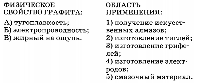 8В. Установите соответствие между физическим свойством графита и областью его применения.
