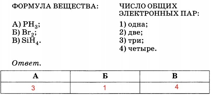 10В. Установите соответствие между формулой вещества и числом общих электронных пар в его молекуле.
