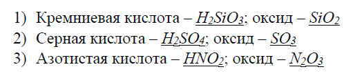 13С. Запишите формулы кислот и соответствующих им оксидов.