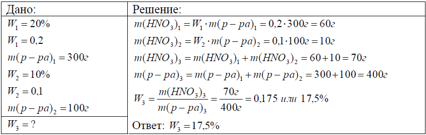 12С. Смешали 300 г 20%-го раствора и 100 г 10%-го раствора азотной кислоты. Определите массовую долю азотной кислоты в полученном растворе.