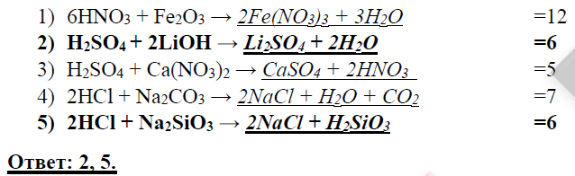 8В. Сумма всех коэффициентов равна 6 в уравнениях реакций, протекающих между веществами, формулы которых: