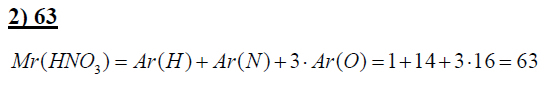 5А. Относительная молекулярная масса азотной кислоты HNO3 равна: