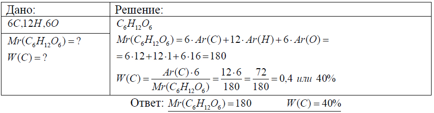 11С. Молекула глюкозы состоит из шести атомов углерода, двенадцати атомов водорода и шести атомов кислорода. Напишите формулу глюкозы и вычислите ее относительную молекулярную массу и массовую долю углерода в ее молекуле.