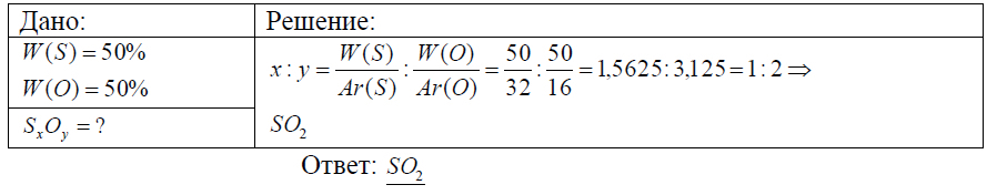 12С. Выведите формулу вещества, в которой массовые доли серы и кислорода равны 50%.