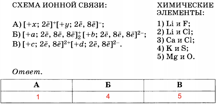 10В. Установите соответствие между схемой ионной связи и химическими элементами, которые ее образуют.