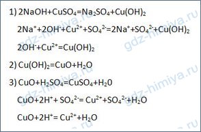 4. К раствору гидроксида натрия добавили неизвестный раствор голубого цвета. Выпал студенистый осадок ярко-синего цвета. При нагревании последнего цвет изменился на чёрный. К полученной смеси прилили раствор серной кислоты. При нагревании исследуемой смеси образовался прозрачный раствор исходного голубого цвета. Запишите уравнения превращений в молекулярной и ионной формах.