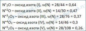 6. Назовите оксиды азота и рассчитайте массовую долю азота в них.
