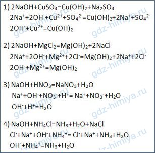 4. Приведите примеры уравнений реакций, характеризующих общие свойства оснований, в молекулярном, полном ионном и сокращённом ионном видах.