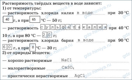 5. Заполните текст формулами и названиями соединений, числовыми значениями. Примечание. Воспользуйтесь данными графиков растворимости веществ (см. рис. 126 в учебнике) и таблицей растворимости.