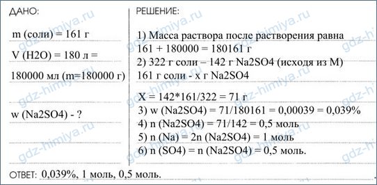 9. Навеску 161 г глауберовой соли Na2S04 • ЮН20 растворили в 180 л воды. Вычислите массовую долю сульфата натрия в полученном растворе. Сколько ионов каждого вида в нём находится?