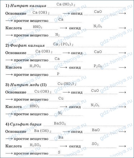 6. Запишите формулы солей и соответствующих им гидроксидов (кислот и оснований), оксидов и простых веществ.