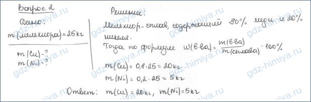 Мельхиор — сплав, содержащий около 80 % меди и 20 % никеля. Поэтому для производства 25 кг мельхиора необходимо взять:
