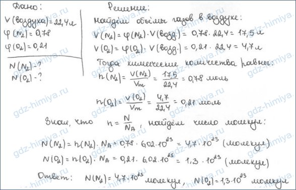 2. Зная объемный состав воздуха, найдите количество вещества каждого газа: азота и кислорода — в 100 л воздуха при н.у.