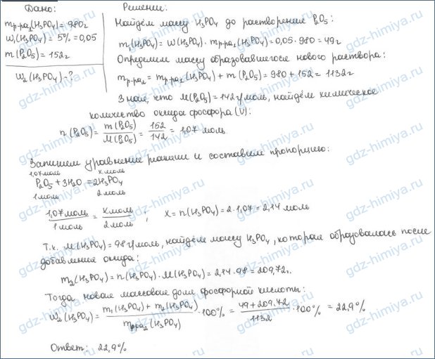 6. В 980 г 5% -го раствора фосфорной кислоты растворили 152 г оксида фосфора (V). Вычислите массовую долю фосфорной кислоты в полученном растворе.