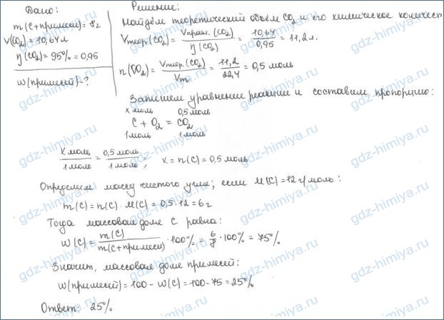 6. При сжигании 8 г угля было получено 10,64 л (н.у.) углекислого газа, что составляет 95% от теоретически возможного. Вычислите массовую долю примесей в угле.