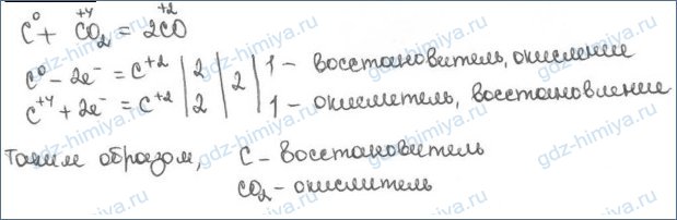 7. При недостатке кислорода углерод взаимодействует с углекислым газом согласно уравнению: С + CO2 = 2CO. Какая форма существования элемента углерода проявляет в этой реакции окислительные свойства, а какая — восстановительные?